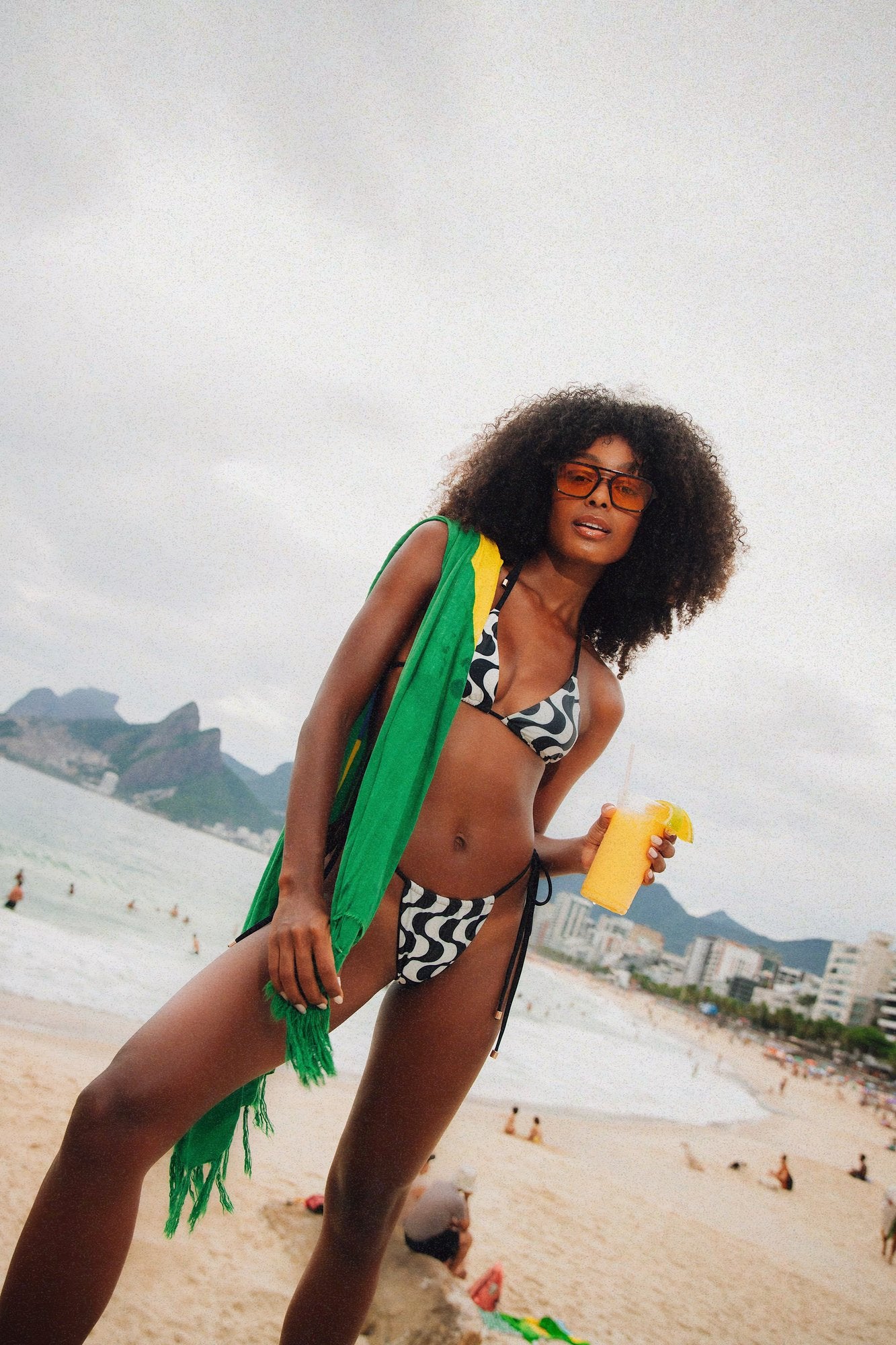 The unique print, inspired by the iconic mosaic sidewalks and vibrant street scenes of Rio de Janeiro, brings a touch of fond memories and joy.